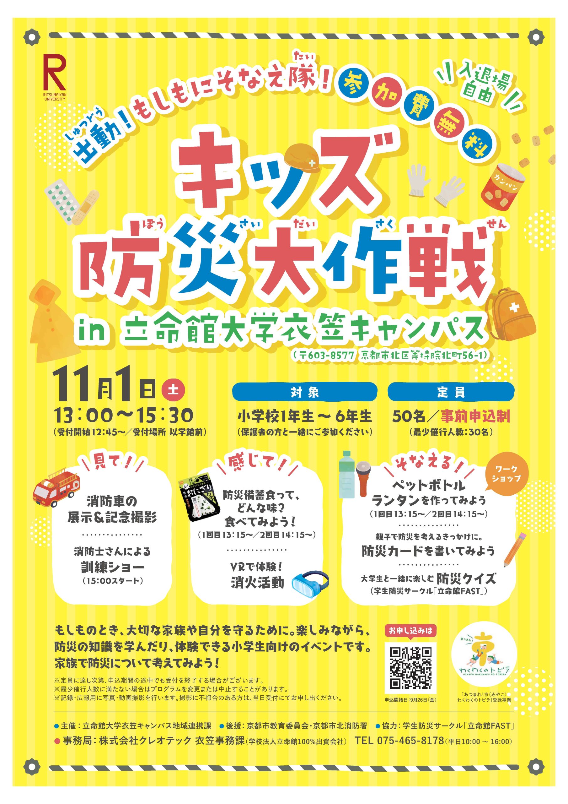 大学生と一緒に学ぶ防災イベント「キッズ防災大作戦」を開催します。